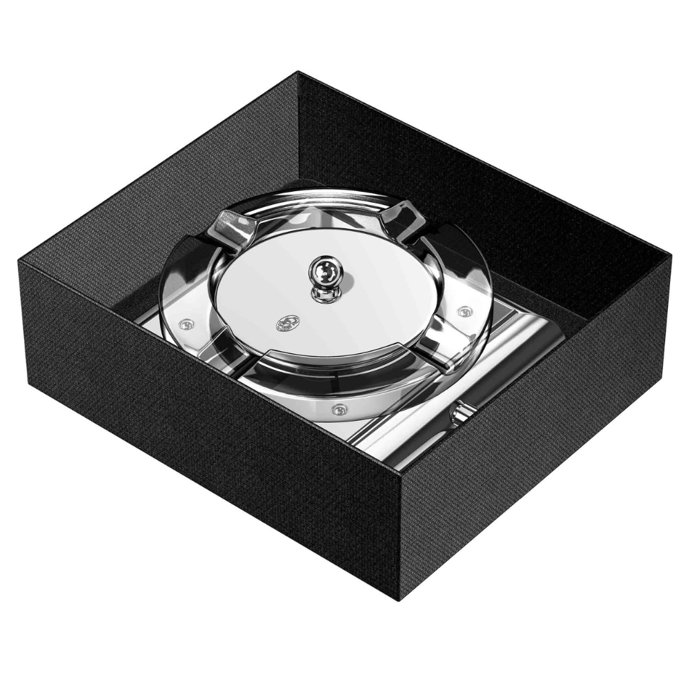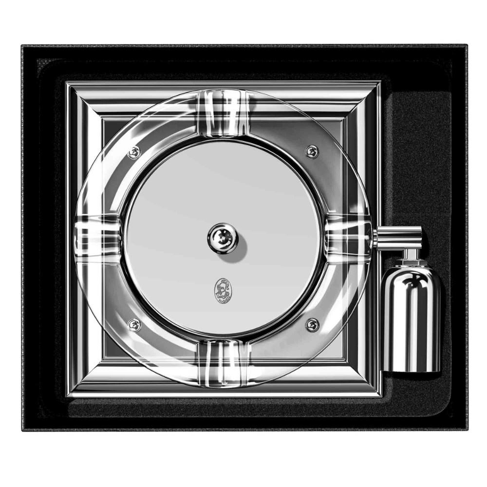 Nuestro cenicero para puros es una forma excelente de homenajear el trabajo artesano que se necesita para la elaboración de un cigarro puro de la mejor calidad. Un complemento que los verdaderos aficionados sabrán apreciar por su elegante diseño y exclusivo acabado, que combina la pureza del cristal y el cautivador brillo del cromo.