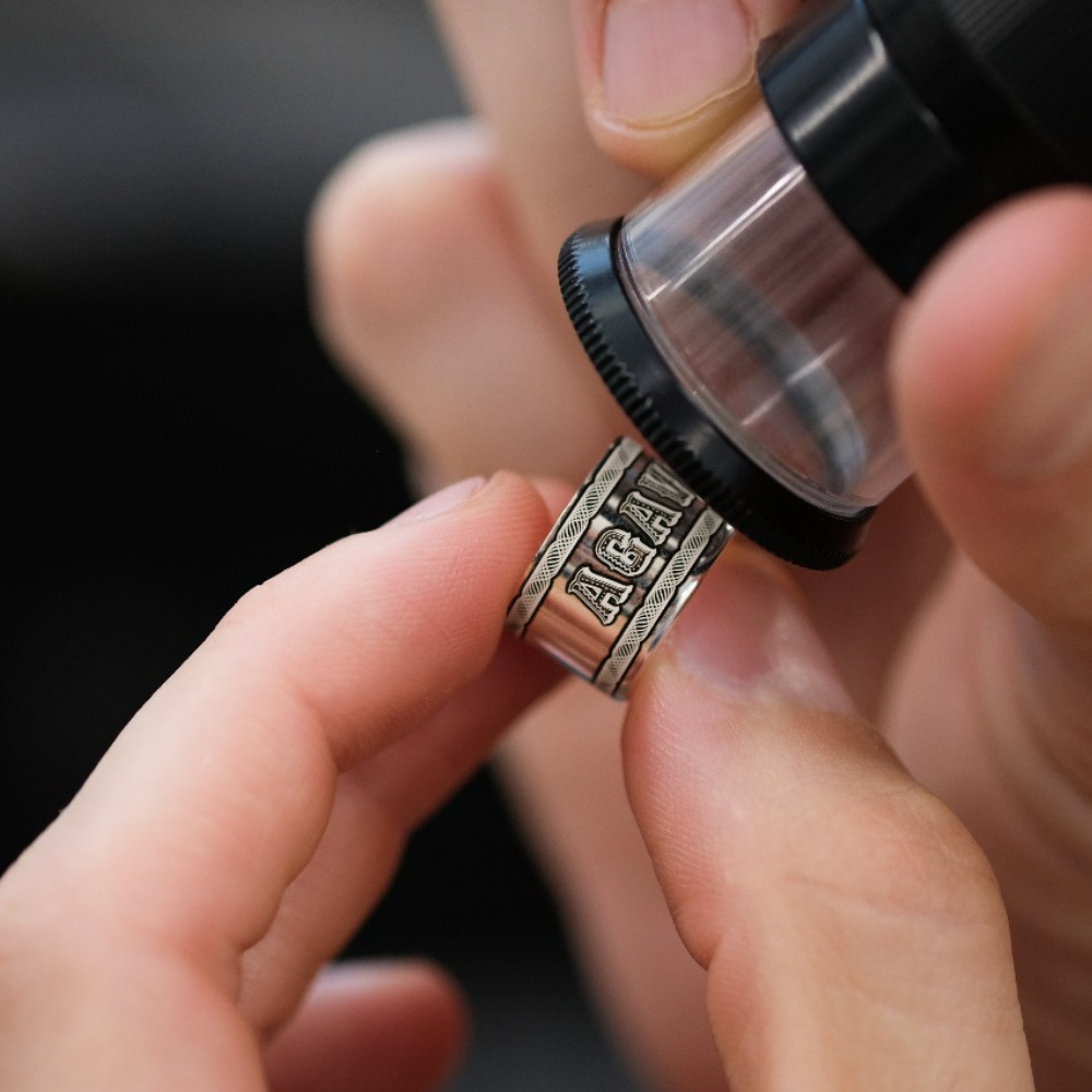 Esta pieza excepcional ha sido elaborada por la reconocida casa italiana Montegrappa, combinando la más alta tradición artesanal con un diseño profundamente enraizado en la cultura mexicana. Su cuerpo está tallado en madera de olivo, y embellecido con arillos de plata, lo que confiere a cada pluma una textura cálida y natural, única en cada ejemplar.