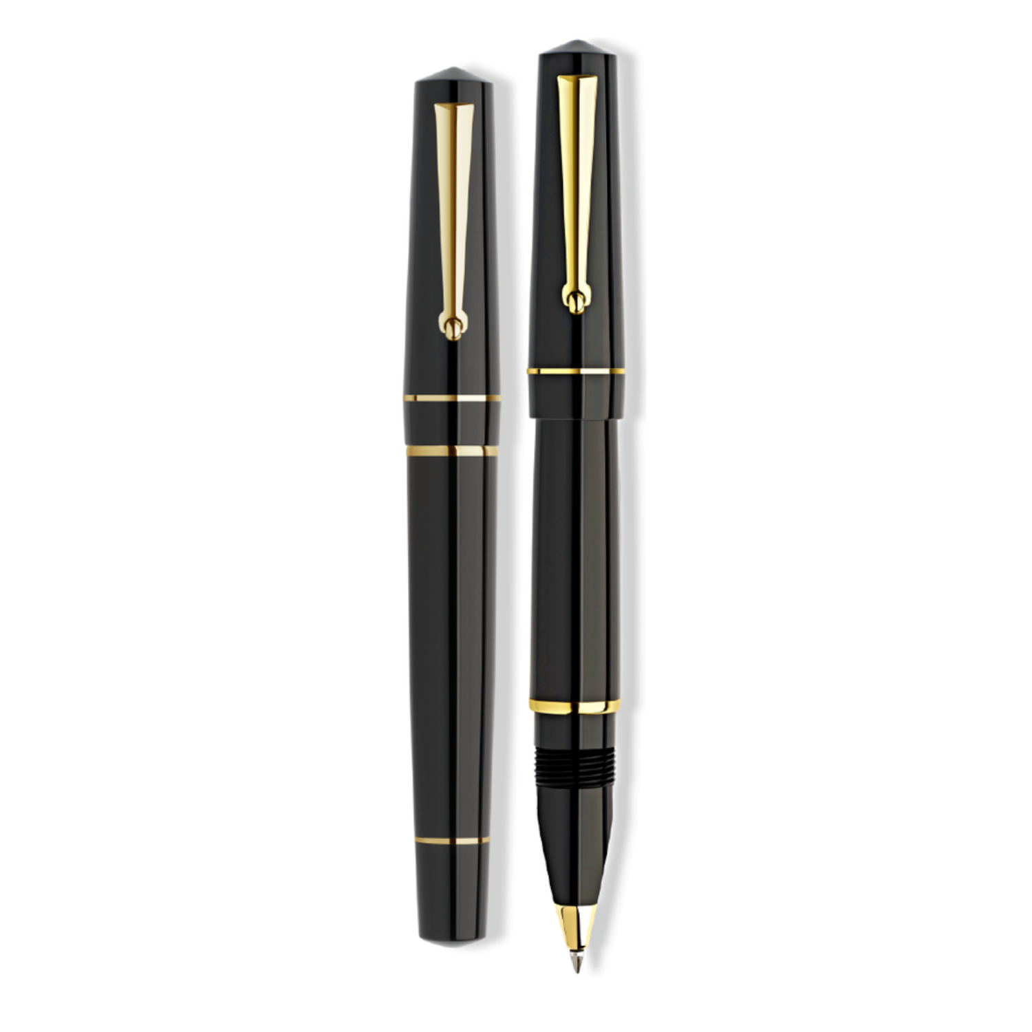 Descubre la elegancia atemporal de la pluma estilográfica Dune "KP" Nera, una pieza diseñada para quienes valoran la escritura como una experiencia única. Su acabado en negro profundo, acentuado con detalles en oro, proyecta sofisticación y carácter en cada trazo.