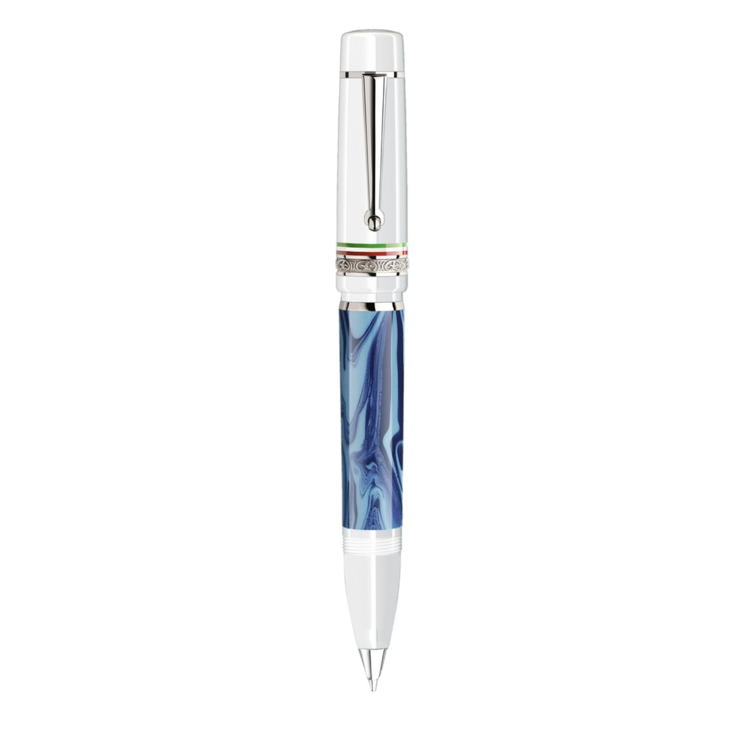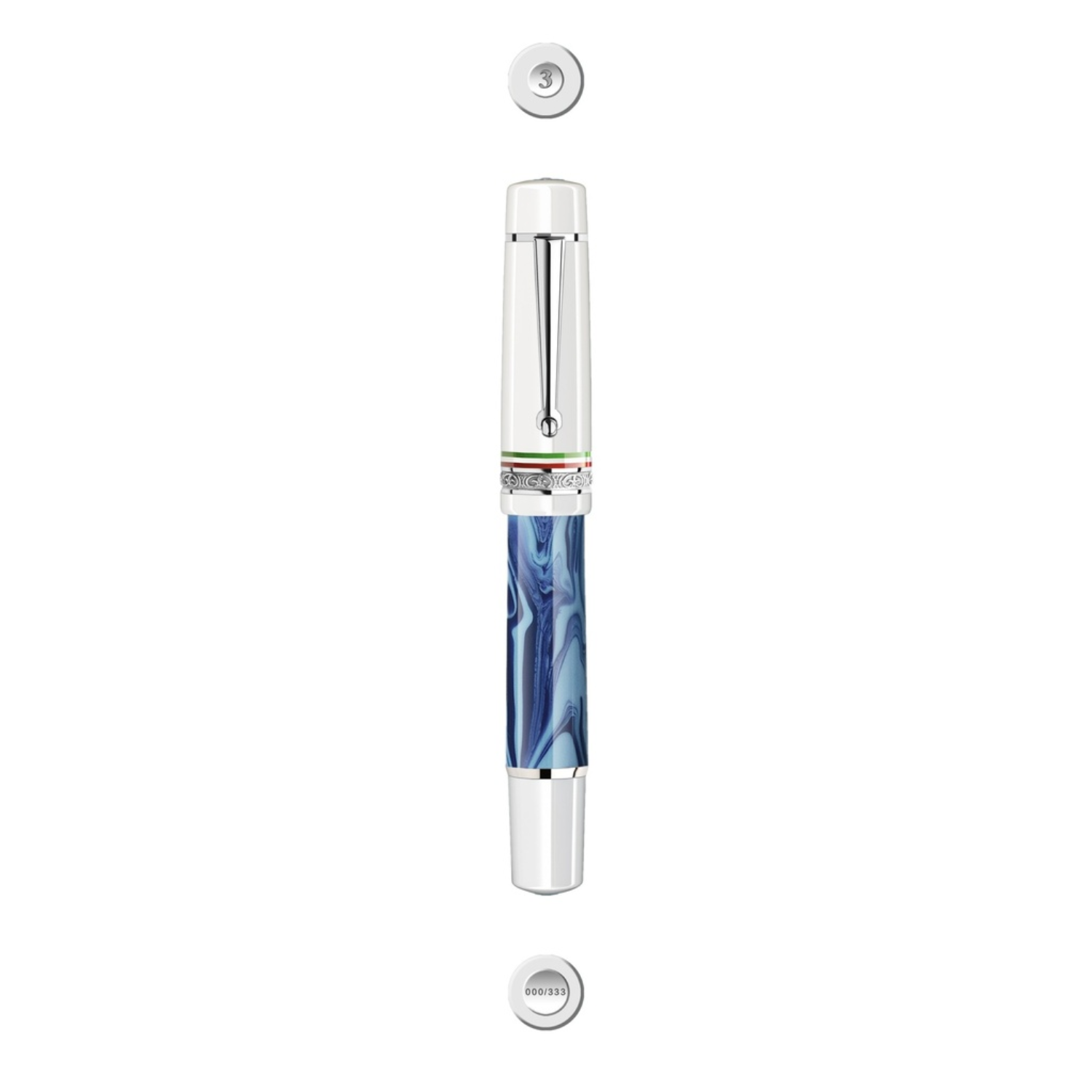 Cada pieza está elaborada con precisión artesanal, torneada a mano a partir de una barra sólida de resina especial en los colores azul y blanco, símbolo del equipo napolitano.