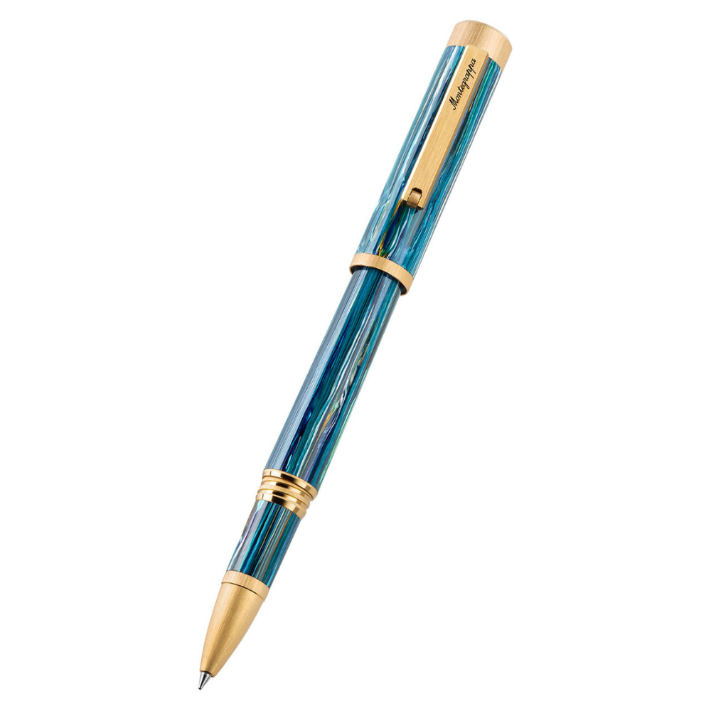 La mezcla boutique de resina de colores resulta en complejas texturas Montegrappite sólo la naturaleza puede diseñar. El equilibrio cósmico juega un papel en su creación: la producción artesanal conduce a residuos reducidos y nuevas mezclas recicladas.