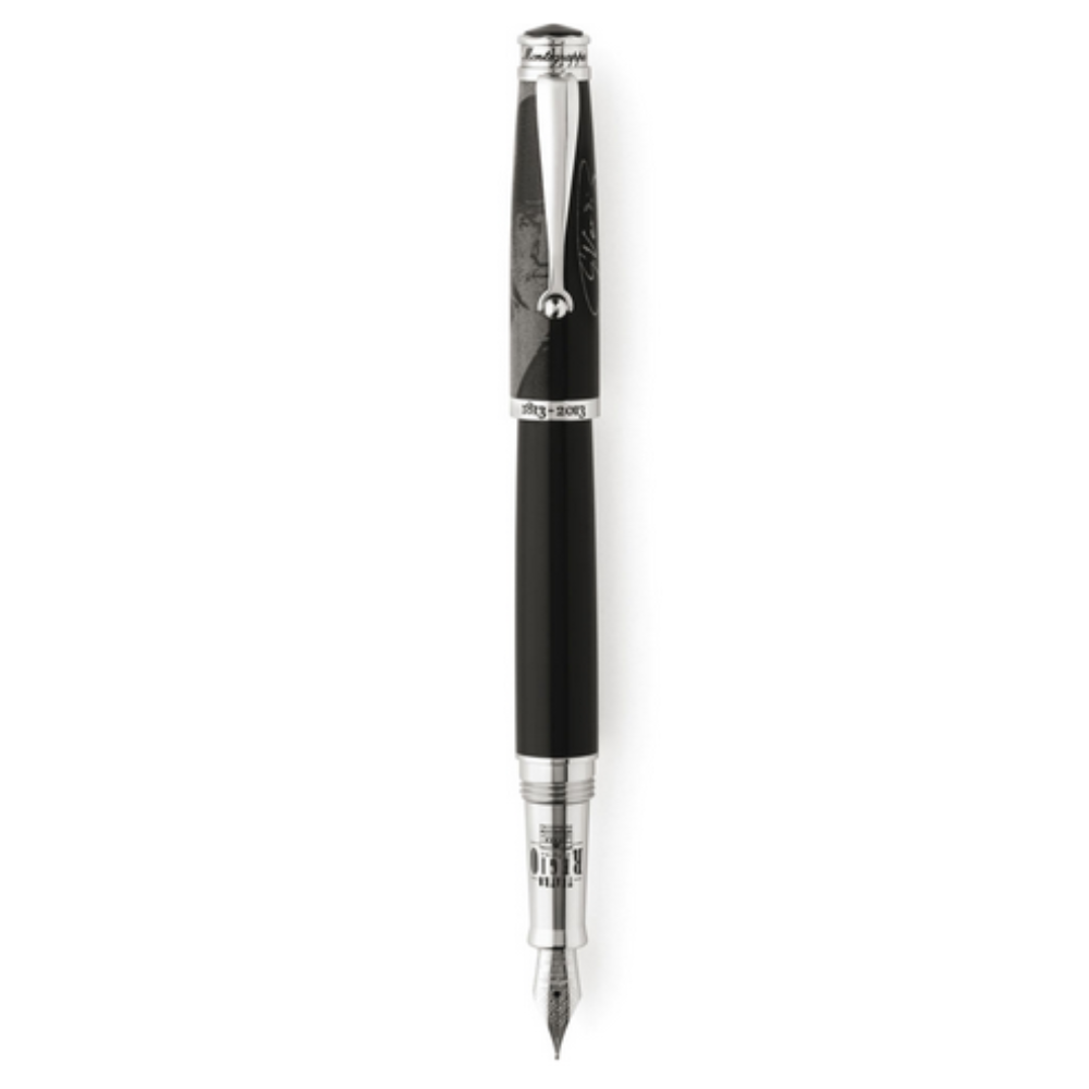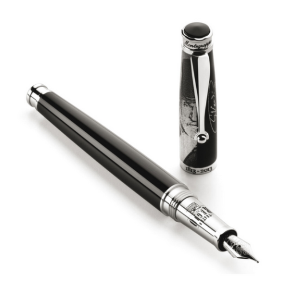 La edición limitada Giuseppe Verdi se forma a partir de una resina negra digna offset por un llamativo recorte de rodio. La parte superior de la tapa está grabada con el logotipo de Montegrappa con acento tricolor que representa a Italia. Un intrincado grabado láser en un lado de la tapa lleva elegantemente la semejanza de la cara de Giuseppe Verdi. La firma expresiva del compositor adorna el bando contrario. La banda en la parte inferior de la tapa denota las fechas conmemorativas de 1813-2013, terminadas con la inscripción Bicentenario.
