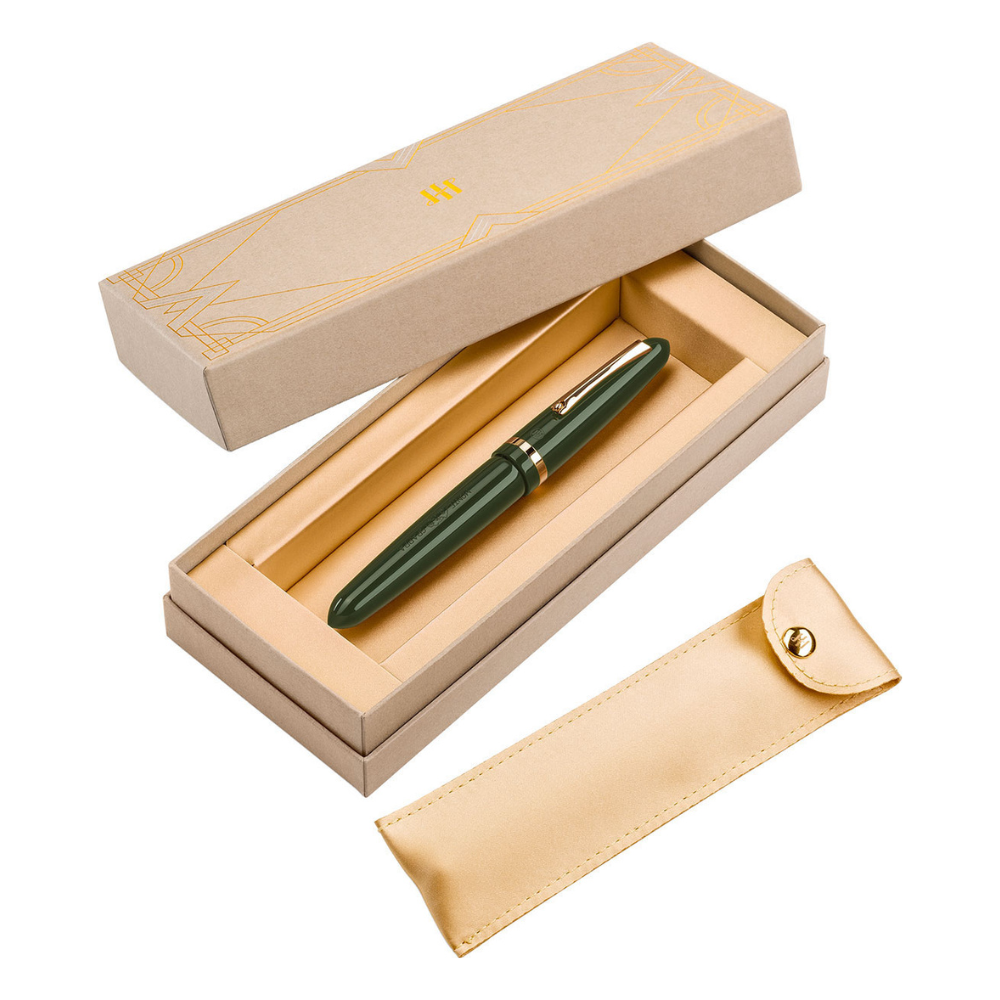 Hecha a mano en el mismo lugar que la original, la pluma Venetia presenta un cuerpo robusto que exhibe la destreza de los primeros Montegrappa, con puntas redondeadas y elegantes adornos de latón bañados en oro.