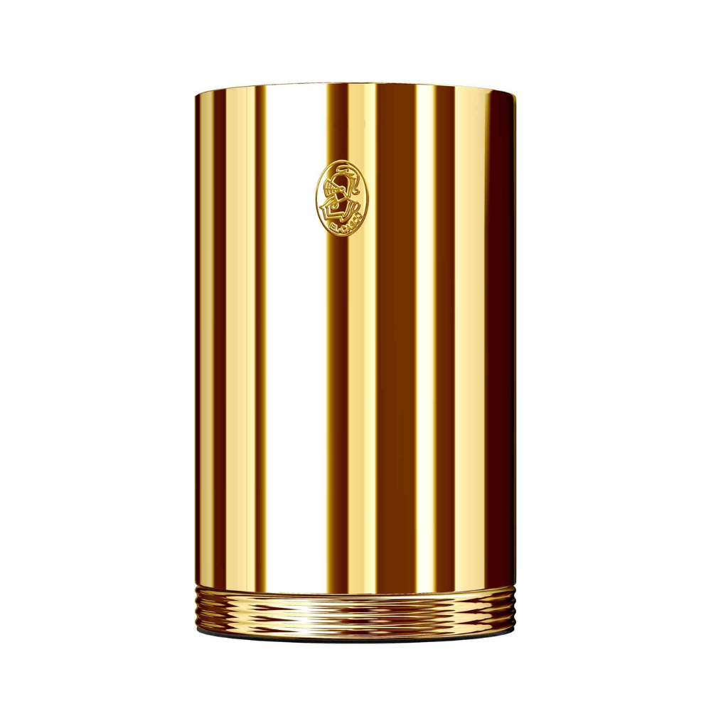 Contenedor de gafas acabado en oro de 23 quilates. Fabricado en latón forjado, bañado en cobre níquel. Pulido a mano.
