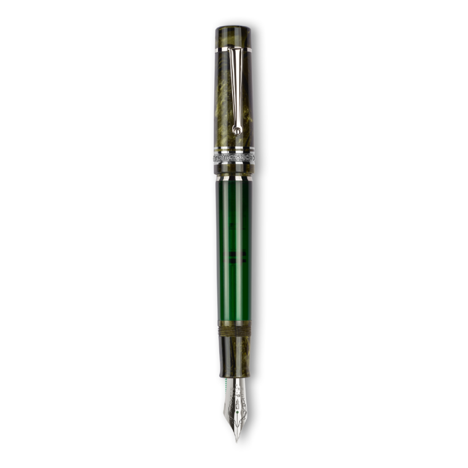 DV Royal Green L.E. es una pluma fuente de edición limitada fabricada en Italia, diseñada como pieza de colección y orientada a usuarios exigentes y entusiastas de la escritura fina. Pertenece a la serie DV (Dolce Vita), conocida por su enfoque en materiales artesanales y mecanismos internos visibles.