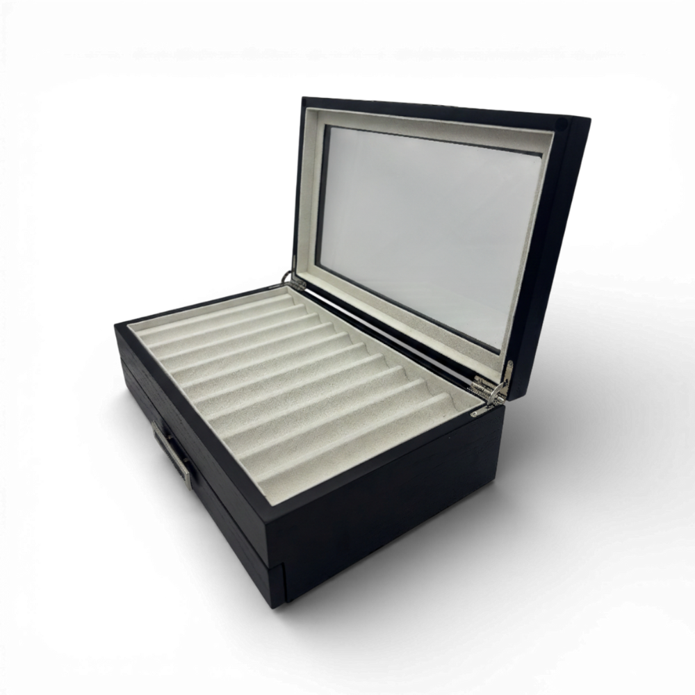 Un estuche ideal para resguardar, organizar y exhibir plumas fuente, roller o bolígrafos de alta gama, ya sea en casa, la oficina o como un regalo de lujo.